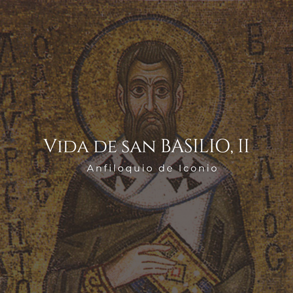 Vida de San Basilio (II) Anfiloquio de Iconio San Basilio, Mosaico en Hagia Sophia (Kiev). Extraído de Wikimedia commons. CAPÍTULO III. Llegando a la ciudad de Antíoco, se alojaron en una posada. El hijo del hospedero, llamado Filoxeno, estaba sentado junto a la puerta en profunda reflexión, ya que era discípulo del sofista Libanio, quien