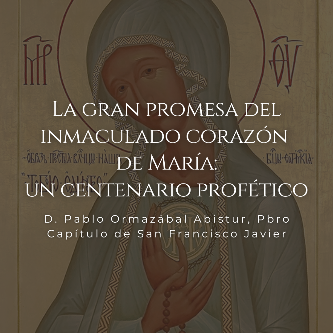 La gran promesa del Corazón Inmaculado de María: Un centenario profético D. Pablo Ormazabal Albistur, Capítulo San Francisco de Javier Icono ruso de Nuestra Señora de Fátima. Entre los meses de diciembre de 2025 y febrero de 2026 estamos celebrando el centenario de las apariciones de Nuestra Señora y el Niño Jesús a Sor Lucia de Fátima en el convento de las Doroteas de Pontevedra (España). Las